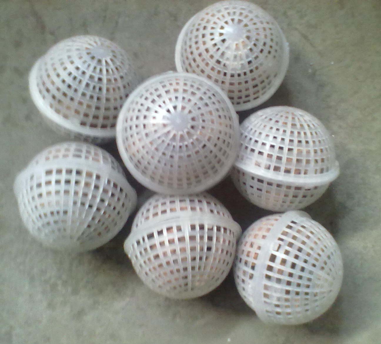 多孔生物懸浮球填料:是用塑料注造的二個半圓形的魚網(wǎng)狀的球形。中心放置塑料編制絲或小塊海綿。在污水的生化處理中具有全立體結構,此表面積大,直接投放,無須固定,易掛膜,不堵塞。適用于造紙,石油化工,生活污水等工業(yè)廢水處理。